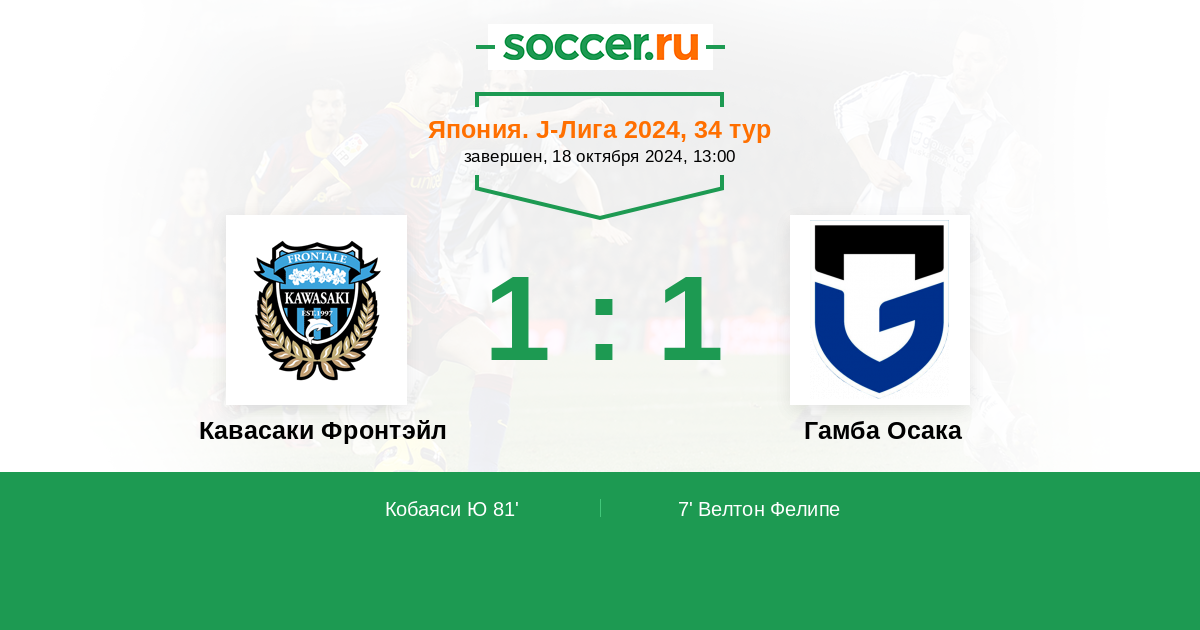 Протокол матча Кавасаки Фронтэйл против Гамба Осака