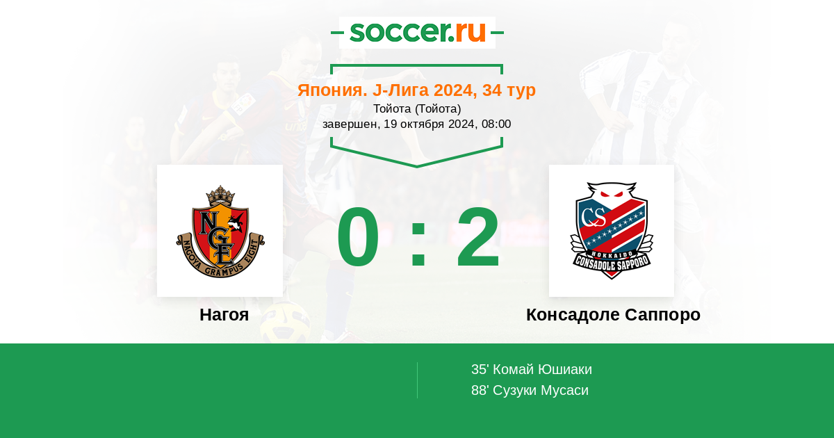 Протокол матча Нагоя против Консадоле Саппоро