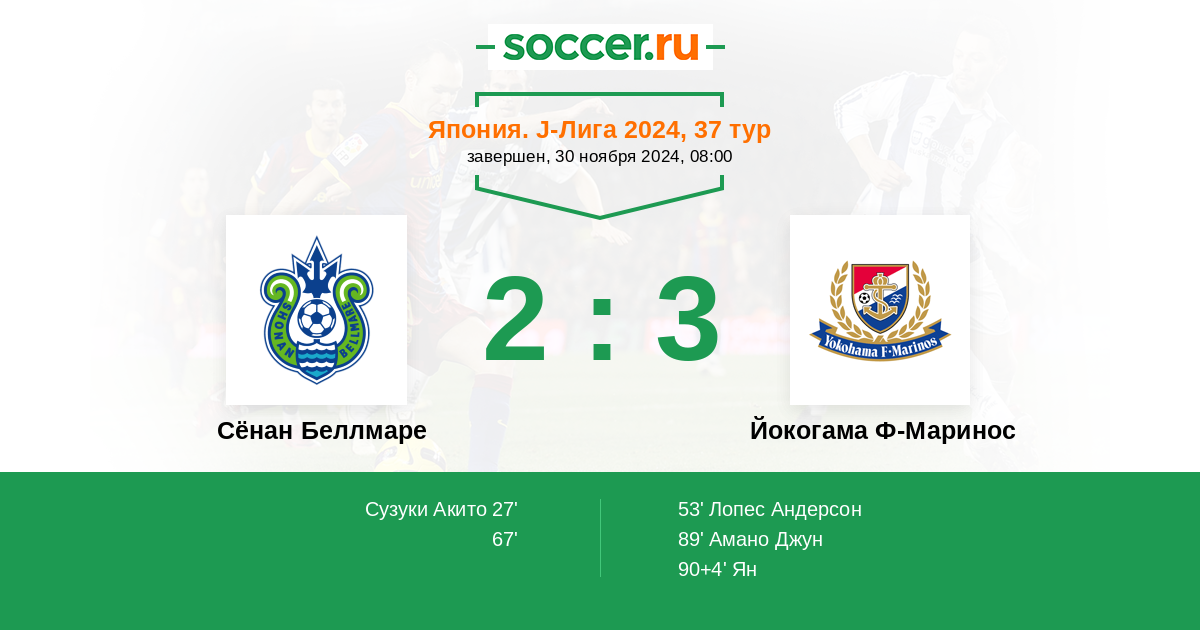 Протокол матча Сёнан Беллмаре против Йокогама Ф-Маринос