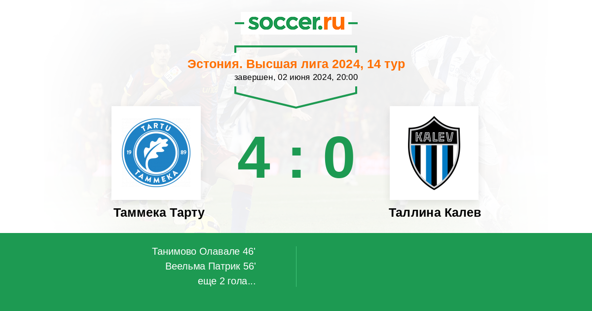 Протокол матча Таммека Тарту против Таллина Калев
