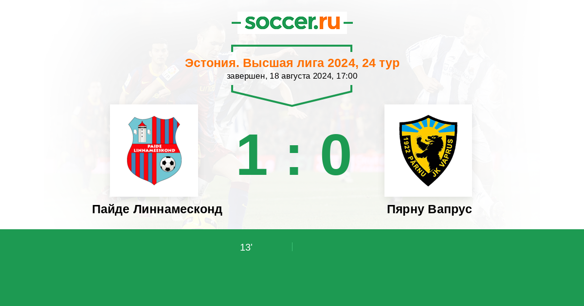 Протокол матча Пайде Линнамесконд против Пярну Вапрус