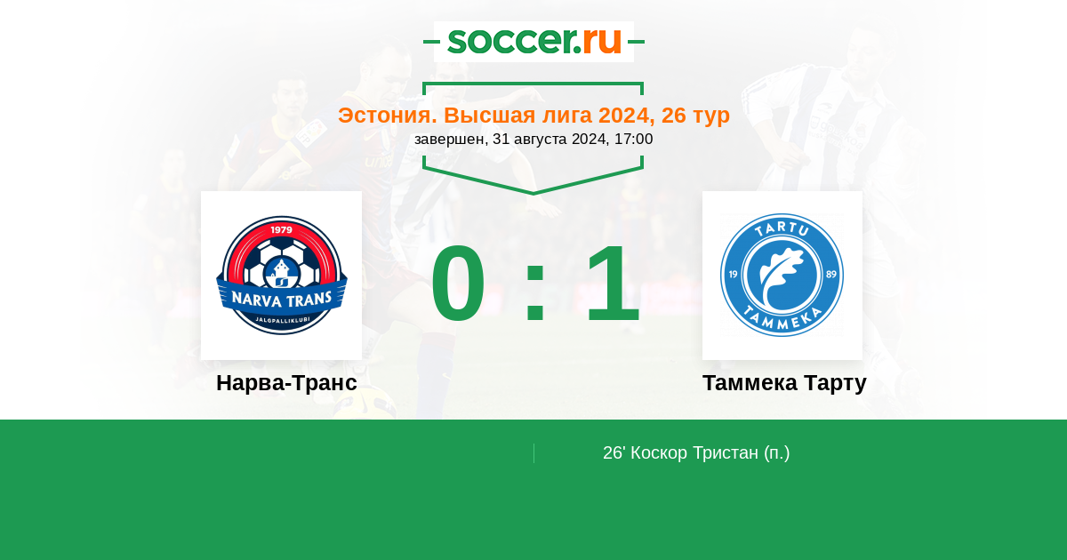 Протокол матча Нарва-Транс против Таммека Тарту