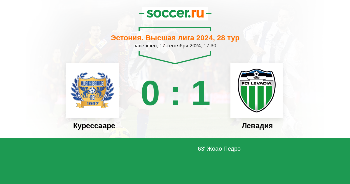 Протокол матча Курессааре против Левадия