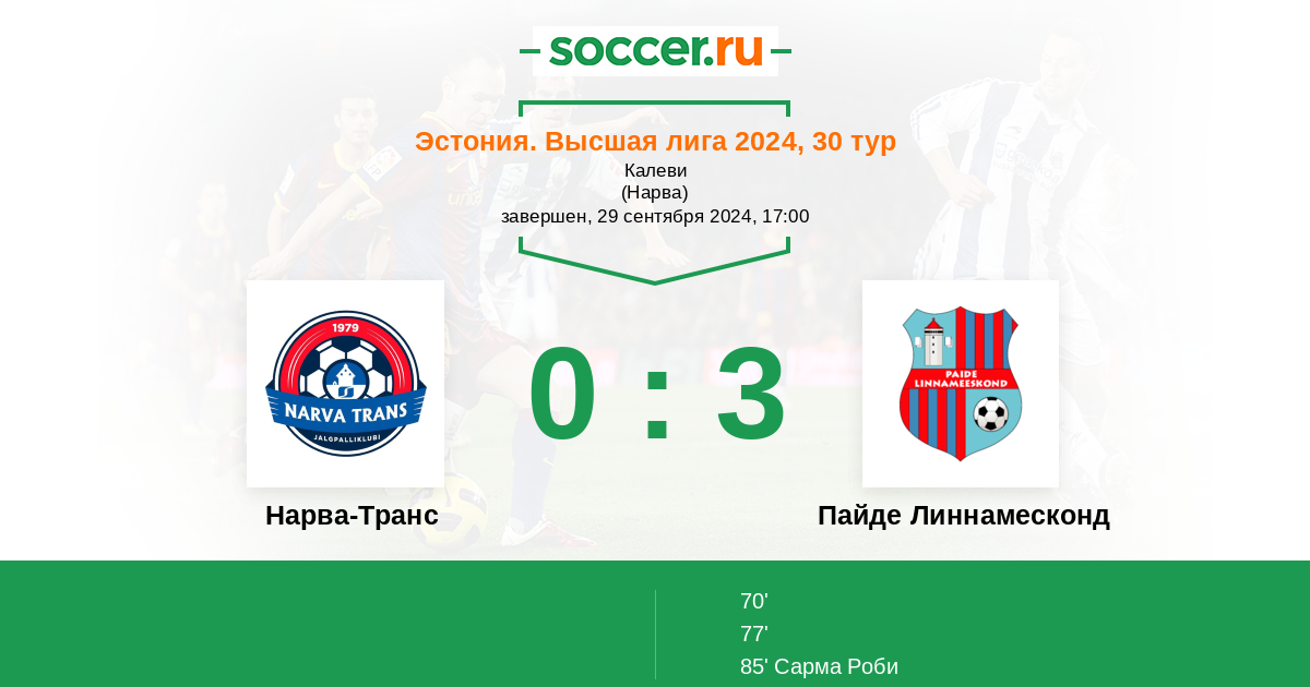 Протокол матча Нарва-Транс против Пайде Линнамесконд