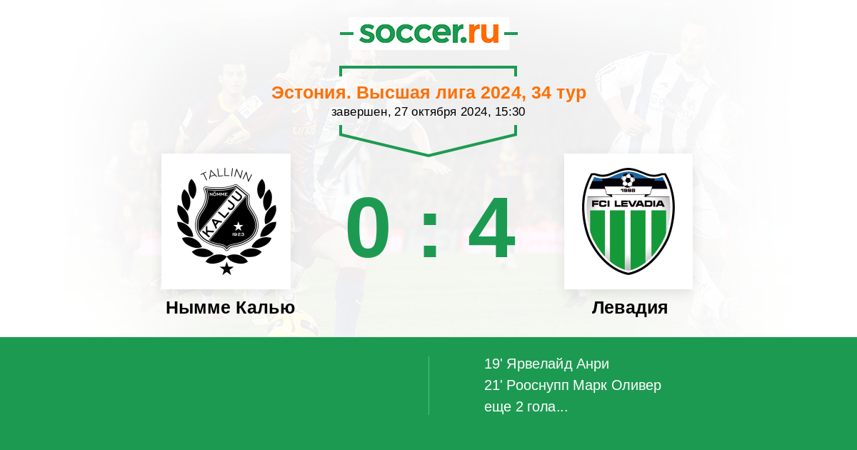 Протокол матча Нымме Калью против Левадия
