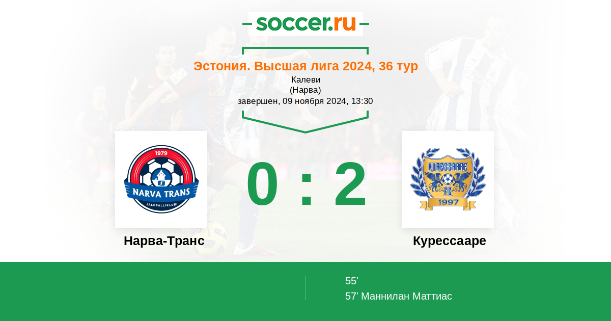 Протокол матча Нарва-Транс против Курессааре
