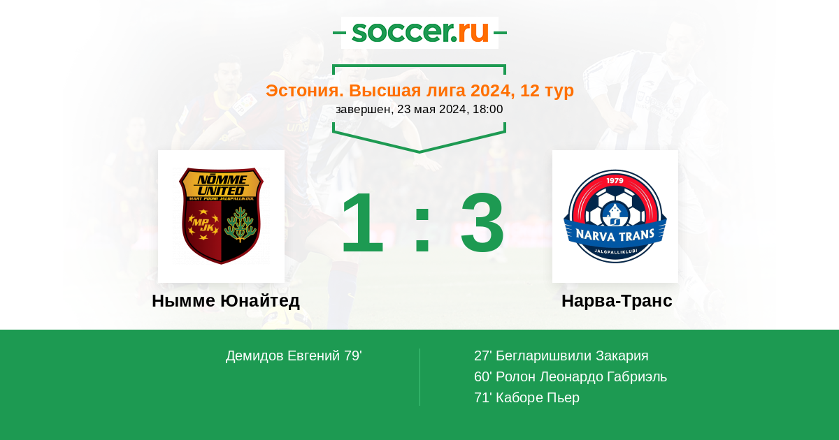 Протокол матча Нымме Юнайтед против Нарва-Транс