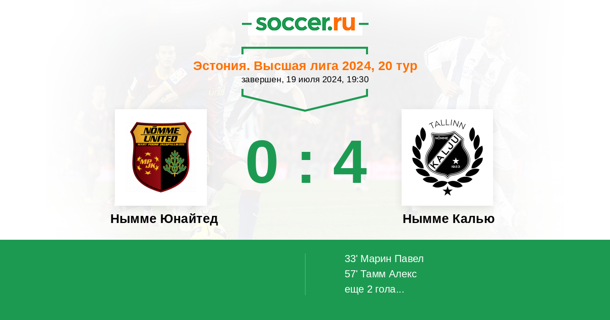 Протокол матча Нымме Юнайтед против Нымме Калью