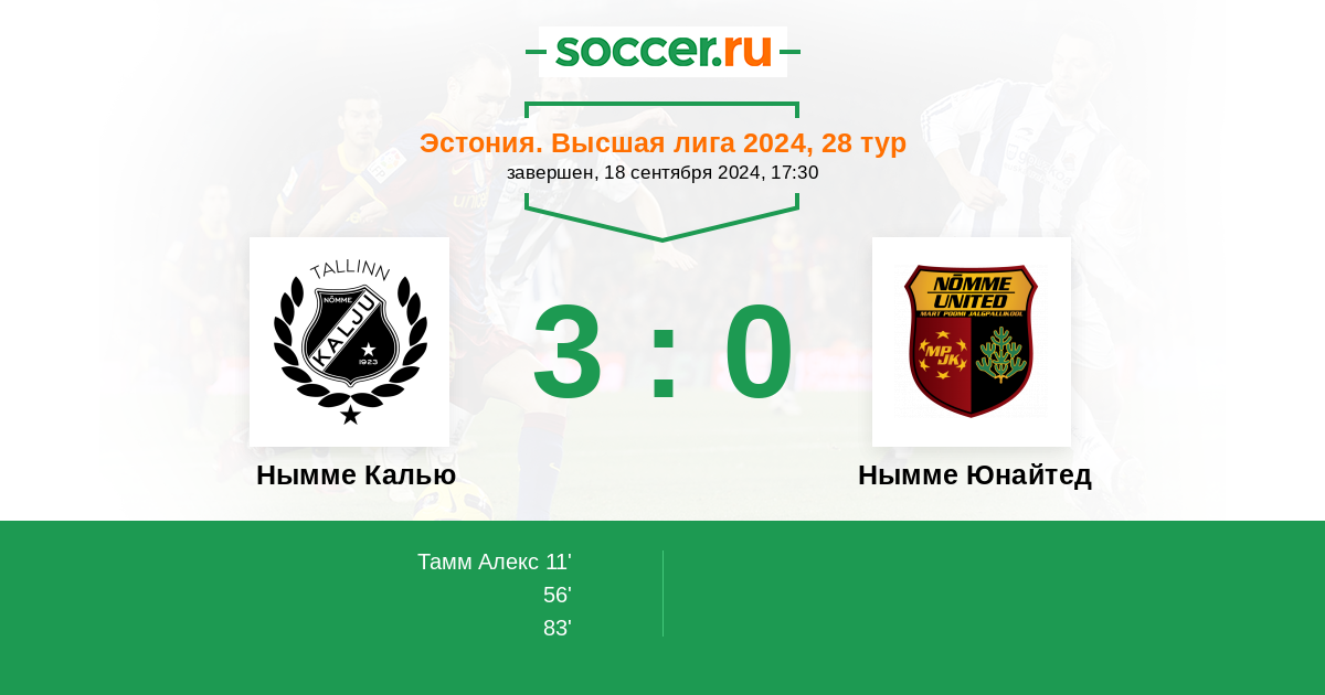 Протокол матча Нымме Калью против Нымме Юнайтед