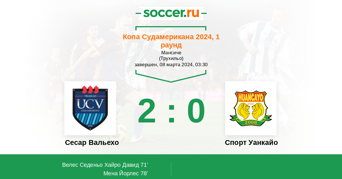 Протокол матча Сесар Вальехо против Спорт Уанкайо
