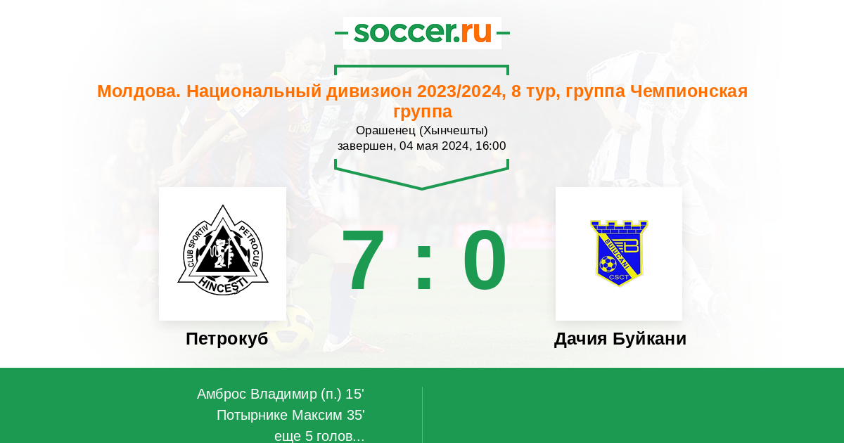 Протокол матча Петрокуб против Дачия Буйкани