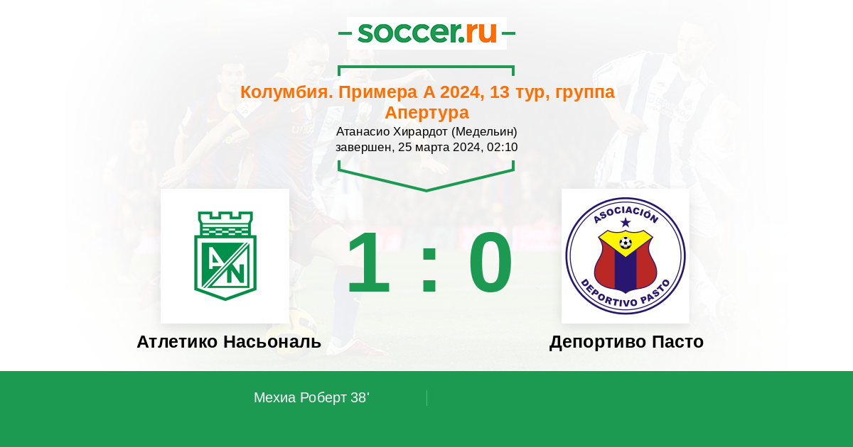 Протокол матча Атлетико Насьональ против Депортиво Пасто