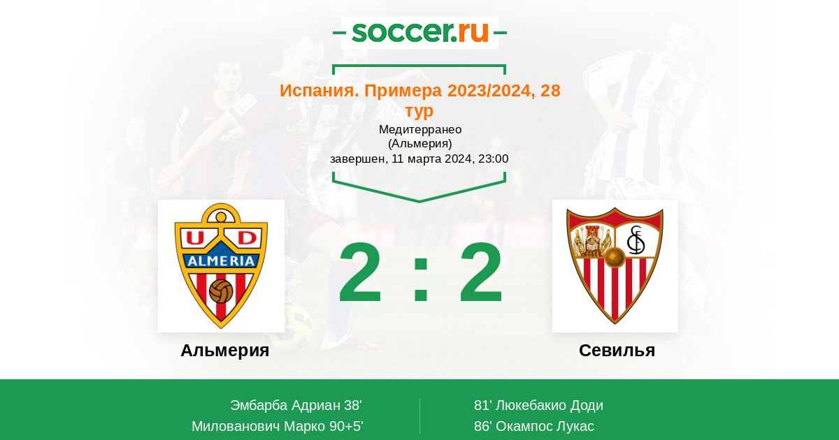 Протокол матча Альмерия против Севилья