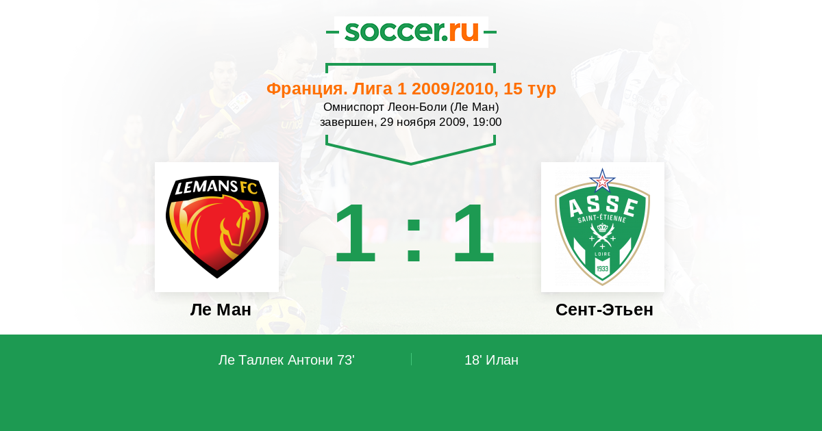 Протокол матча Ле Ман против Сент-Этьен