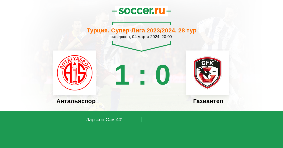 Протокол матча Антальяспор против Газиантеп