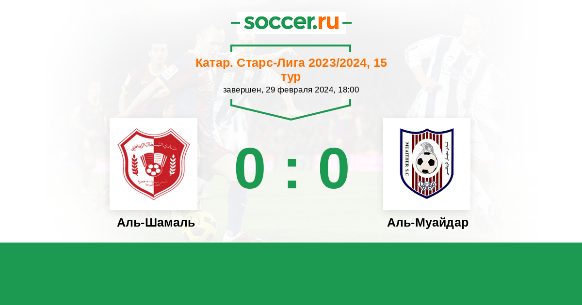 Протокол матча Аль-Шамаль против Аль-Муайдар