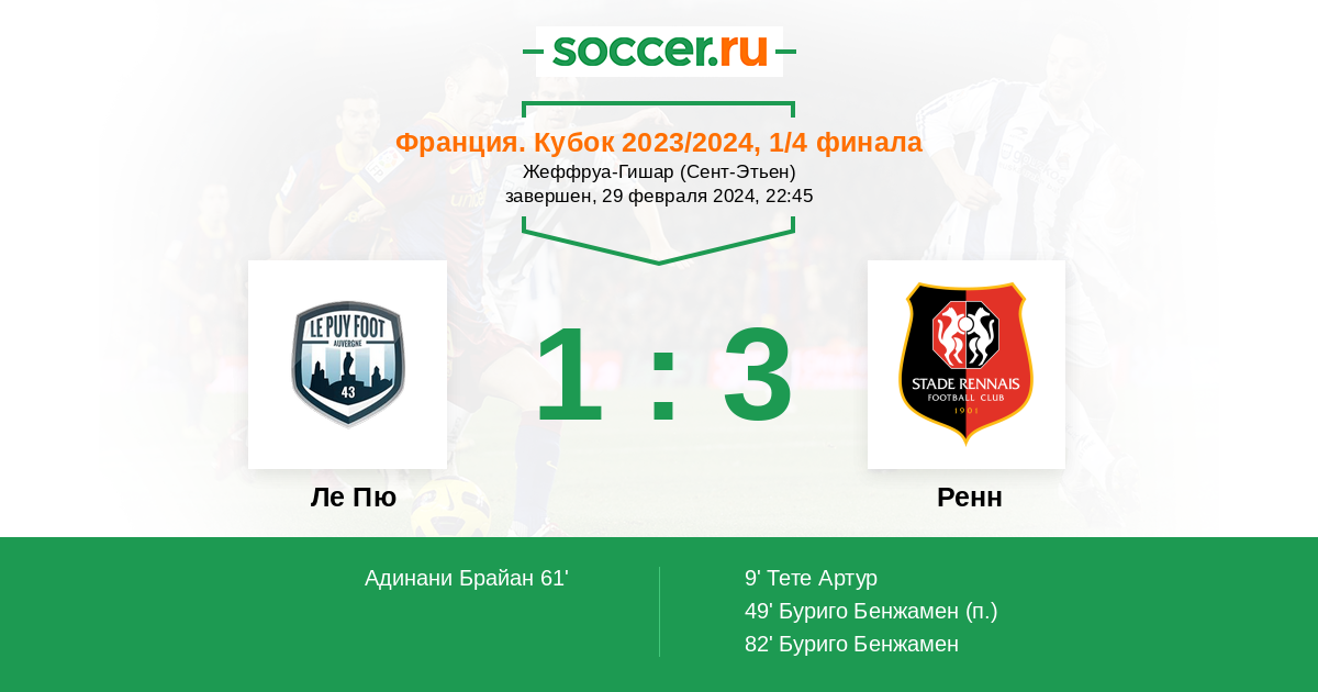 82' (1:3) Буриго Бенжамен (14) (Муинга Арно (9))
