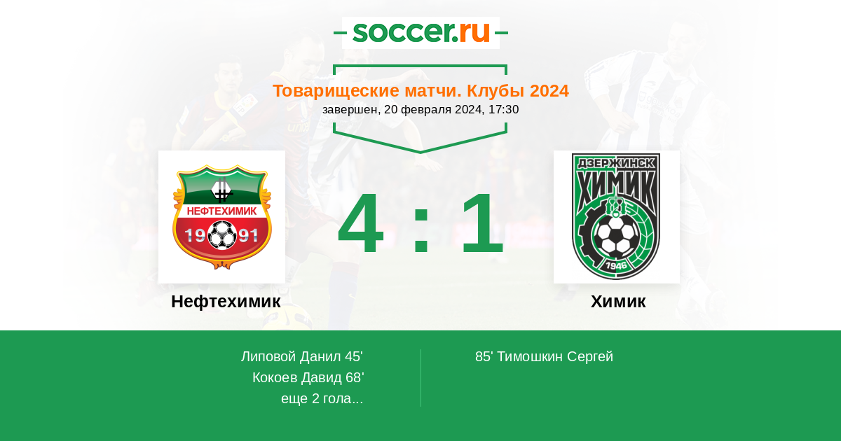 Протокол матча Нефтехимик против Химик