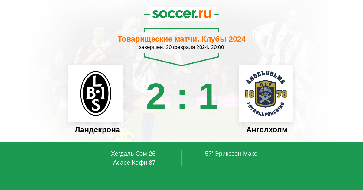 Протокол матча Ландскрона против Ангелхолм