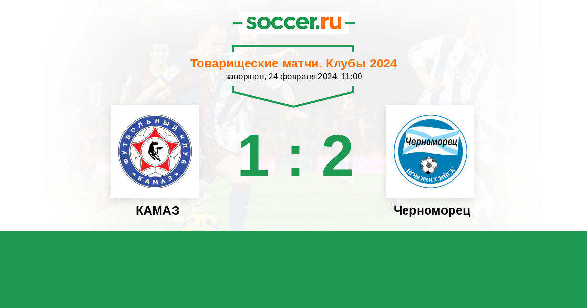 Товарищеские матчи. Клубы 20.02.2019 КАМАЗ Логотип футбольный клуб КАМАЗ (Набережные Челны) 4:2 Логотип футбольный клуб Черноморец (Новороссийск) Черноморец