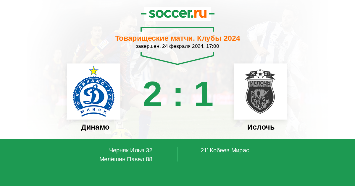 Протокол матча Динамо против Ислочь