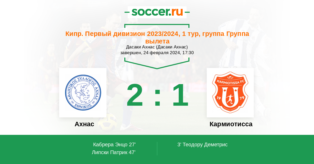Протокол матча Ахнас против Кармиотисса