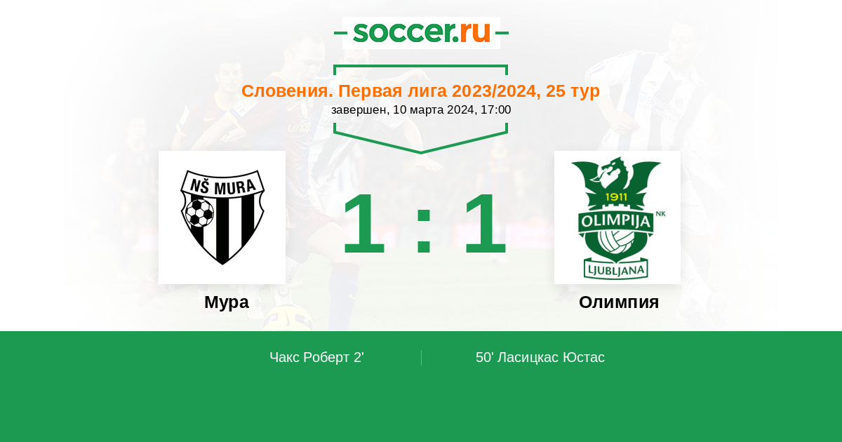 Протокол матча Мура против Олимпия