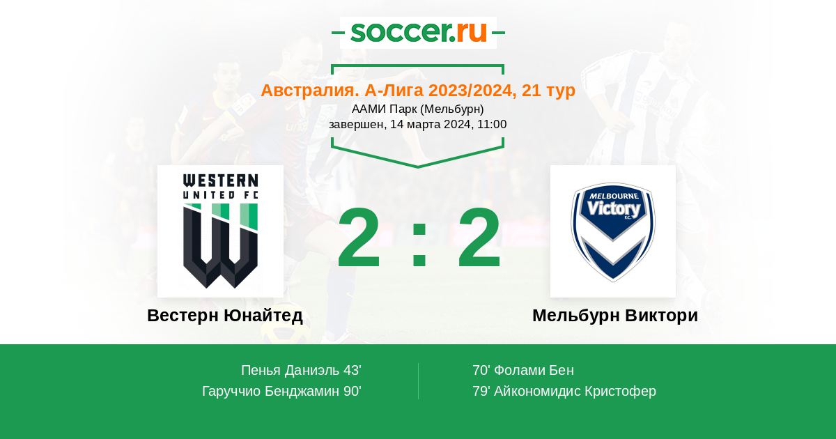 Протокол матча Вестерн Юнайтед против Мельбурн Виктори