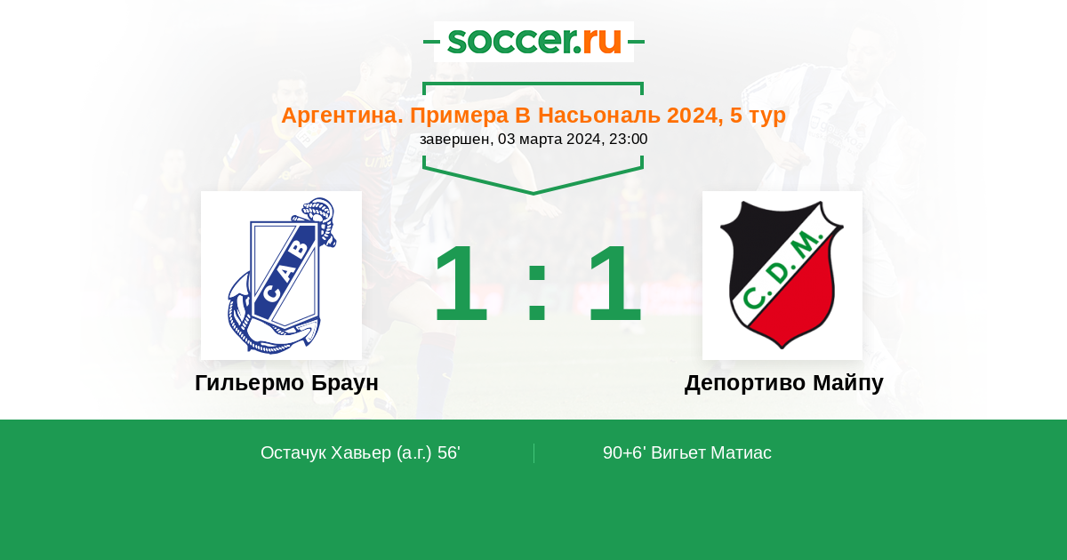 Протокол матча Гильермо Браун против Депортиво Майпу