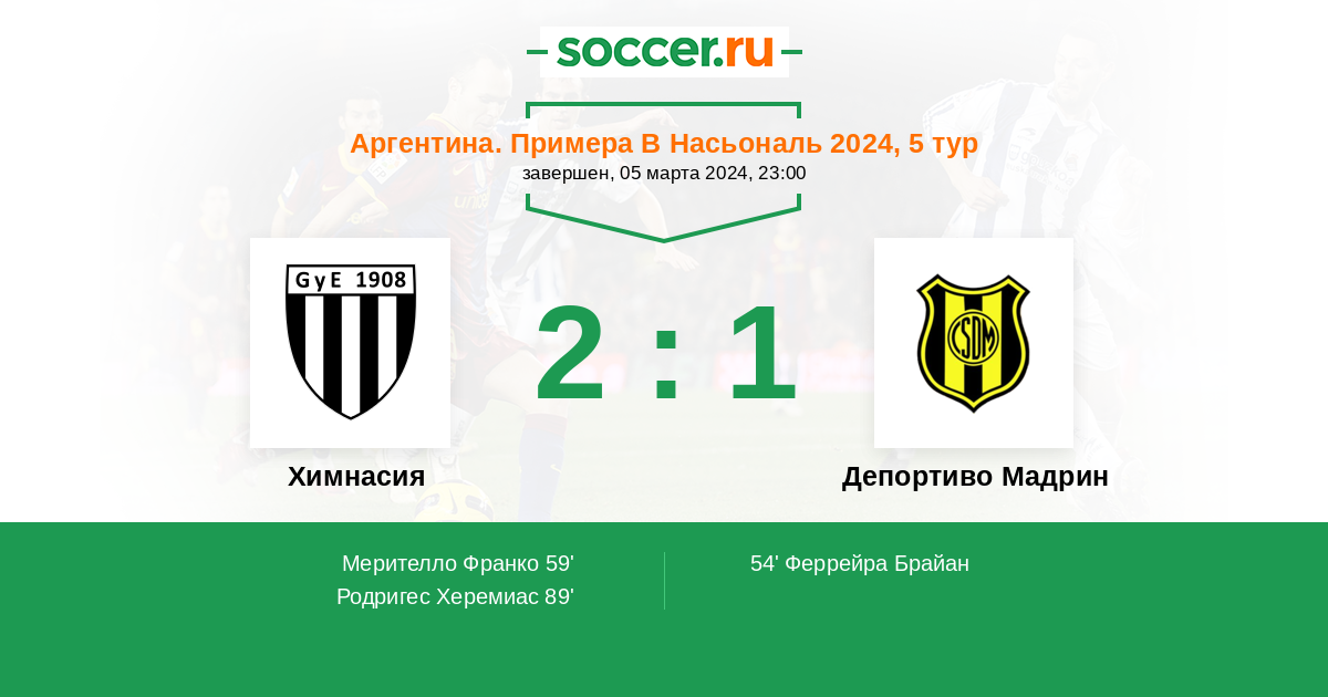 Протокол матча Химнасия против Депортиво Мадрин