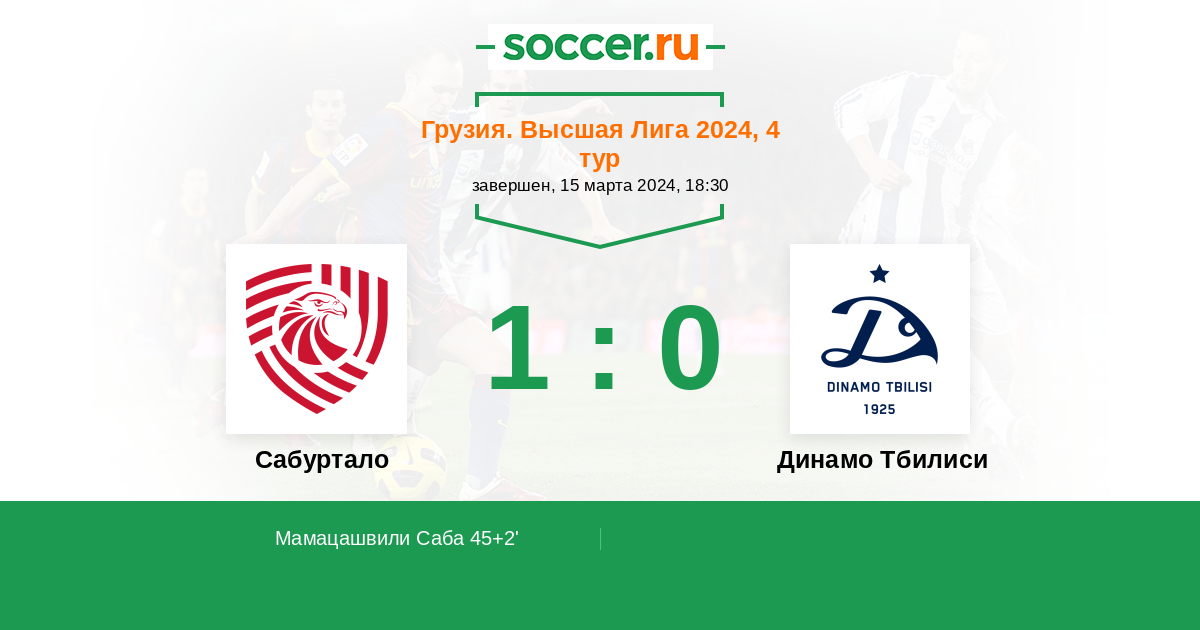 Гол45+2' (1:0) Мамацашвили Саба (33)