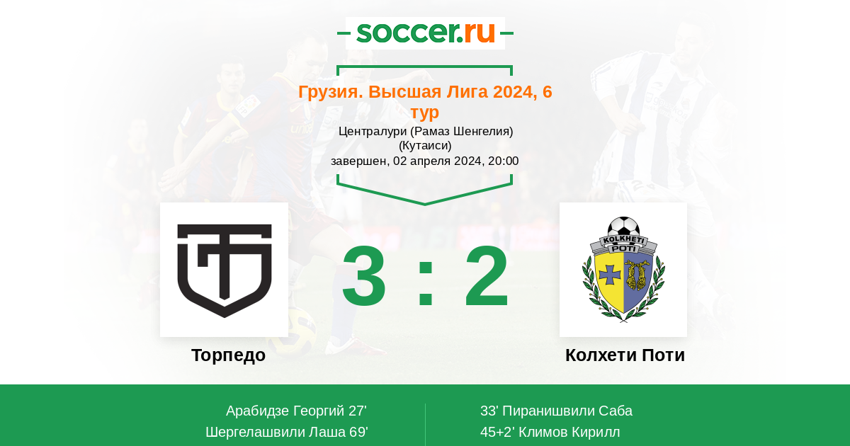Протокол матча Торпедо против Колхети Поти