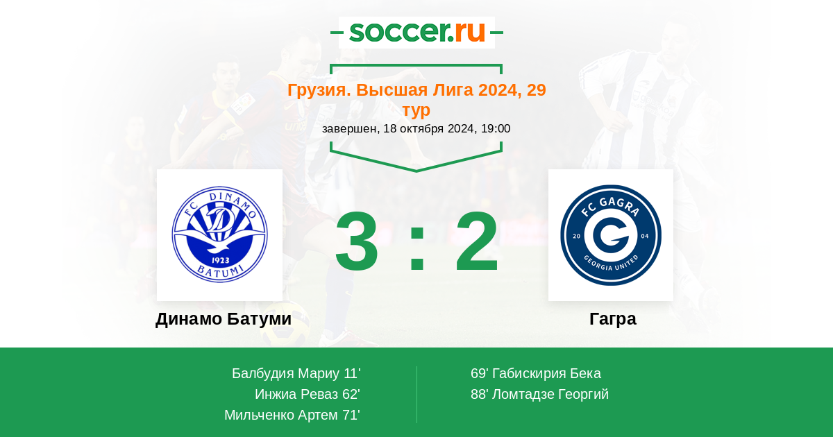 Протокол матча Динамо Батуми против Гагра