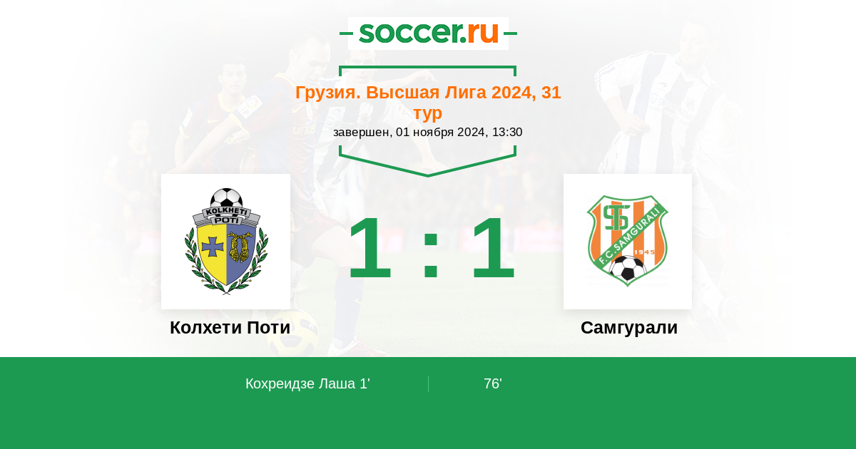 Протокол матча Колхети Поти против Самгурали