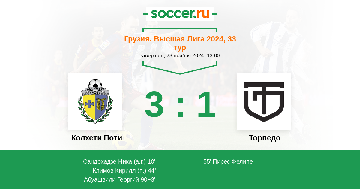 Протокол матча Колхети Поти против Торпедо
