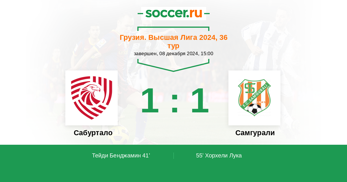 55' (1:1) Хорхели Лука (11) (Чихладзе Демур (10))