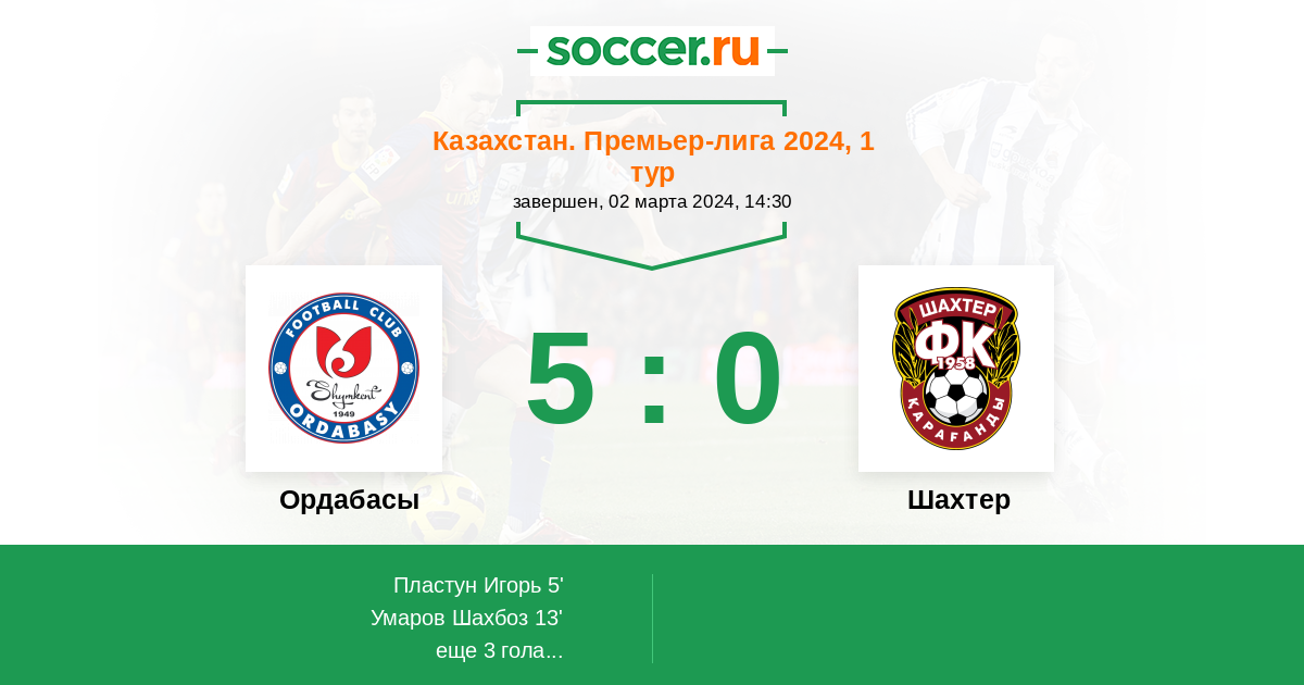 Протокол матча Ордабасы против Шахтер