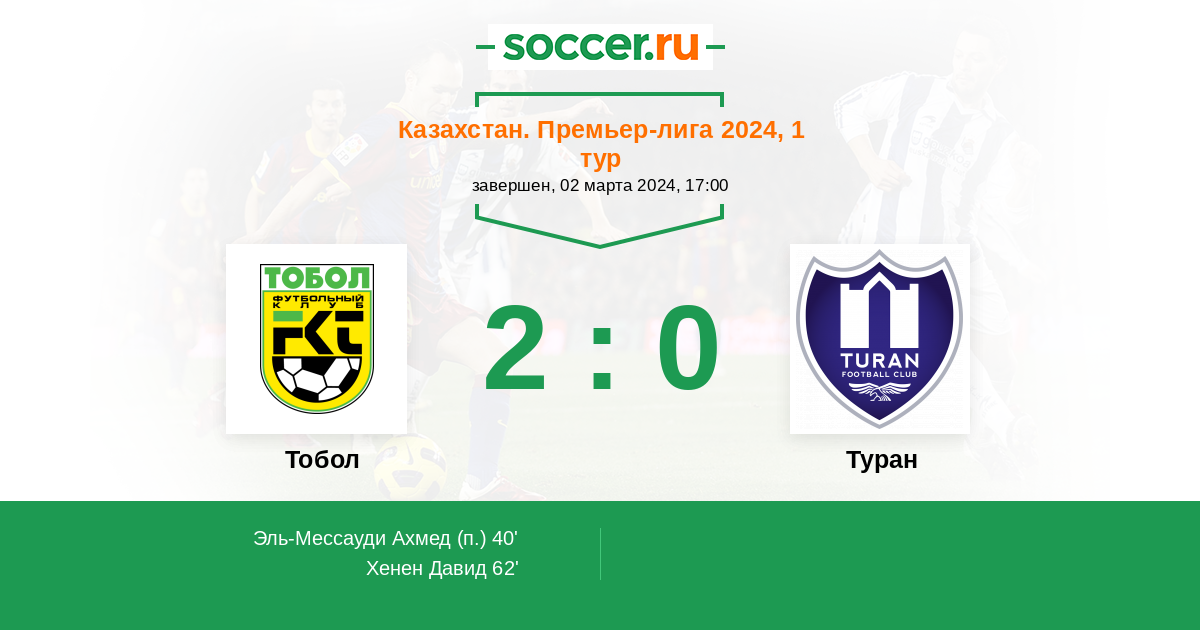 Протокол матча Тобол против Туран