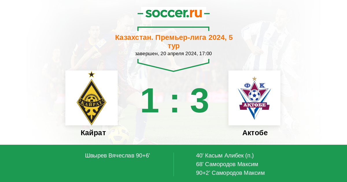 Протокол матча Кайрат против Актобе