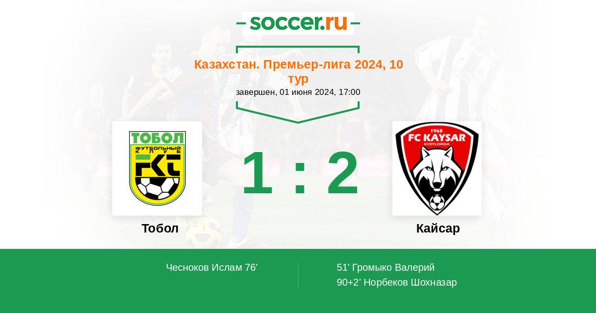 Протокол матча Тобол против Кайсар