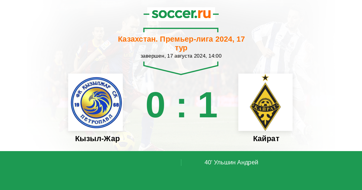 Протокол матча Кызыл-Жар против Кайрат