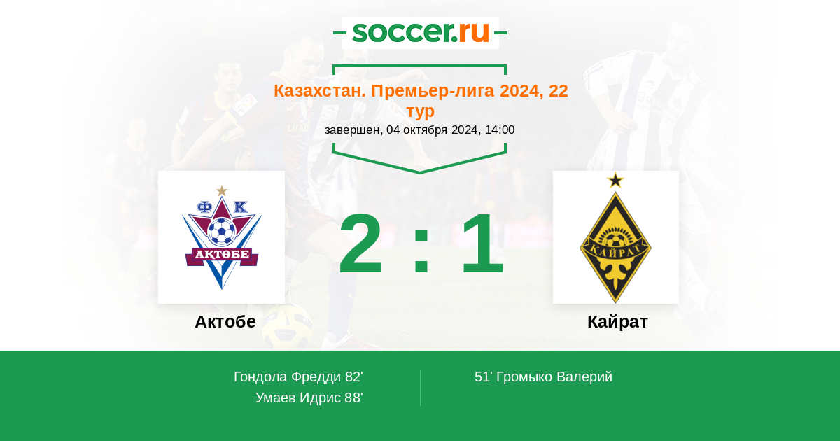 Протокол матча Актобе против Кайрат