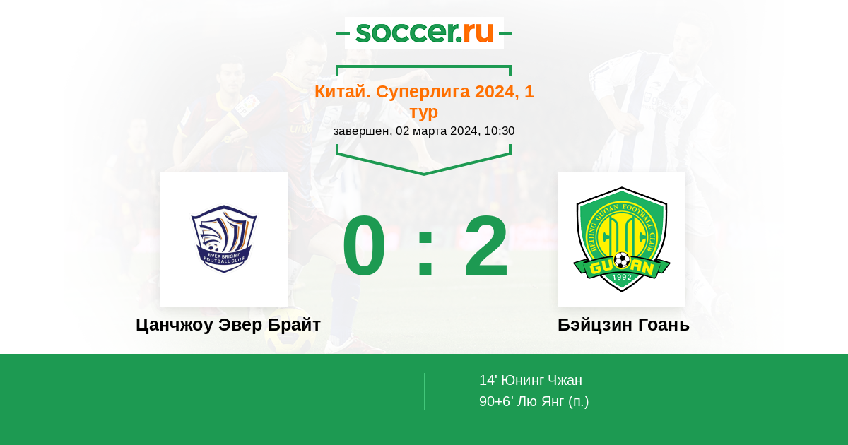 Протокол матча Цанчжоу Эвер Брайт против Бэйцзин Гоань