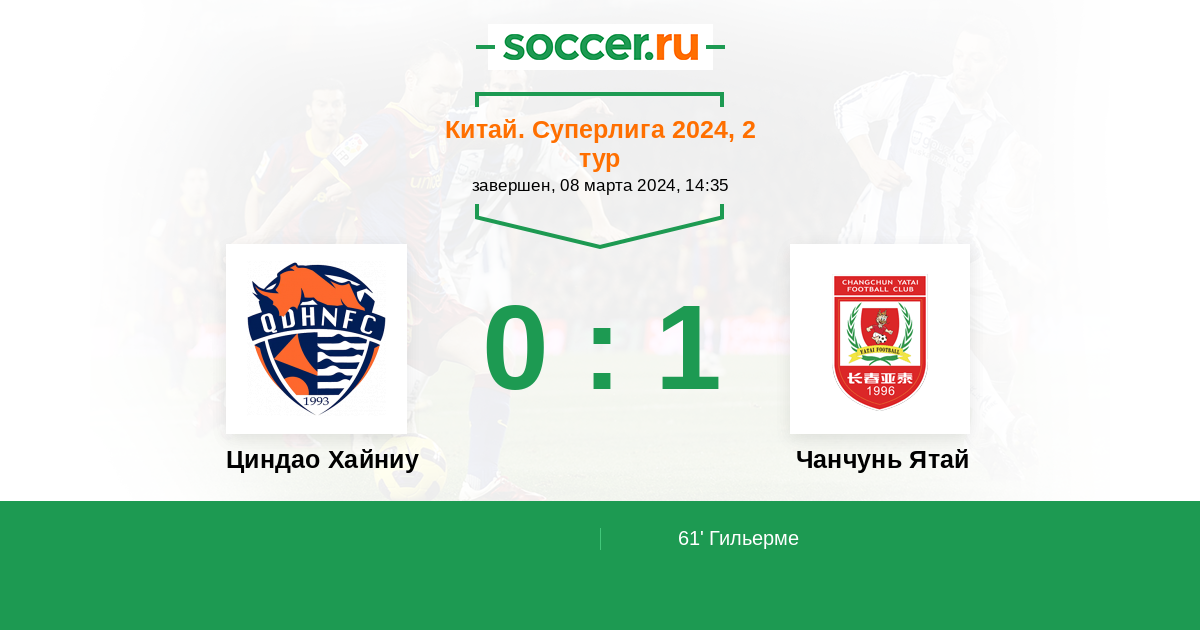 Протокол матча Циндао Хайниу против Чанчунь Ятай