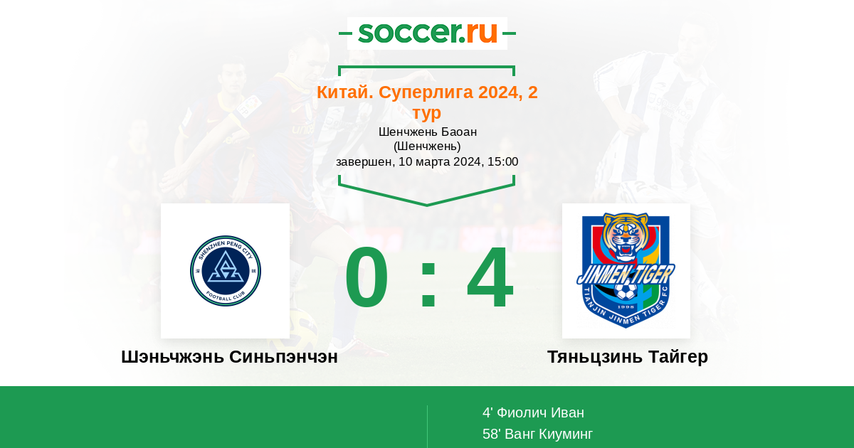 Протокол матча Шэньчжэнь Синьпэнчэн против Тяньцзинь Тайгер
