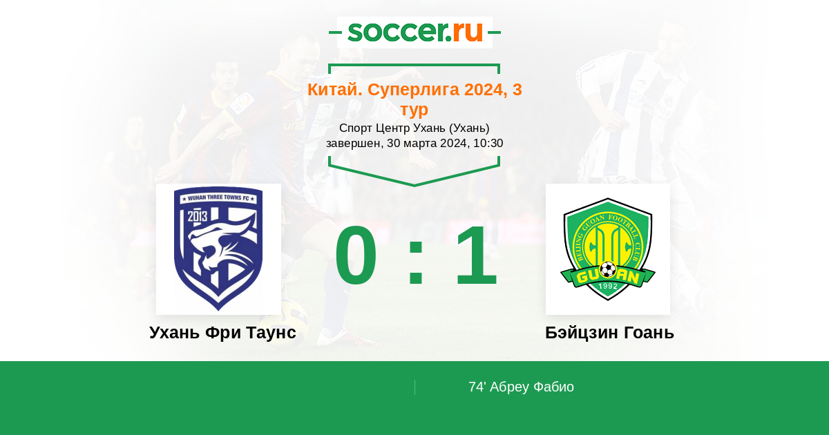 Протокол матча Ухань Фри Таунс против Бэйцзин Гоань