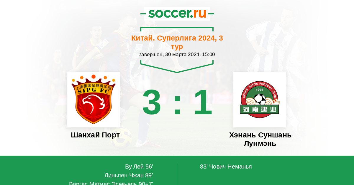 Протокол матча Шанхай Порт против Хэнань Суншань Лунмэнь