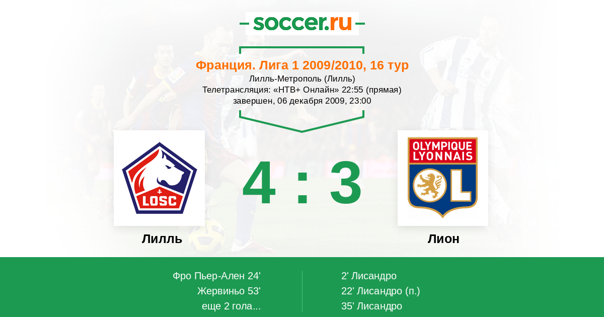 Протокол матча Лилль против Лион