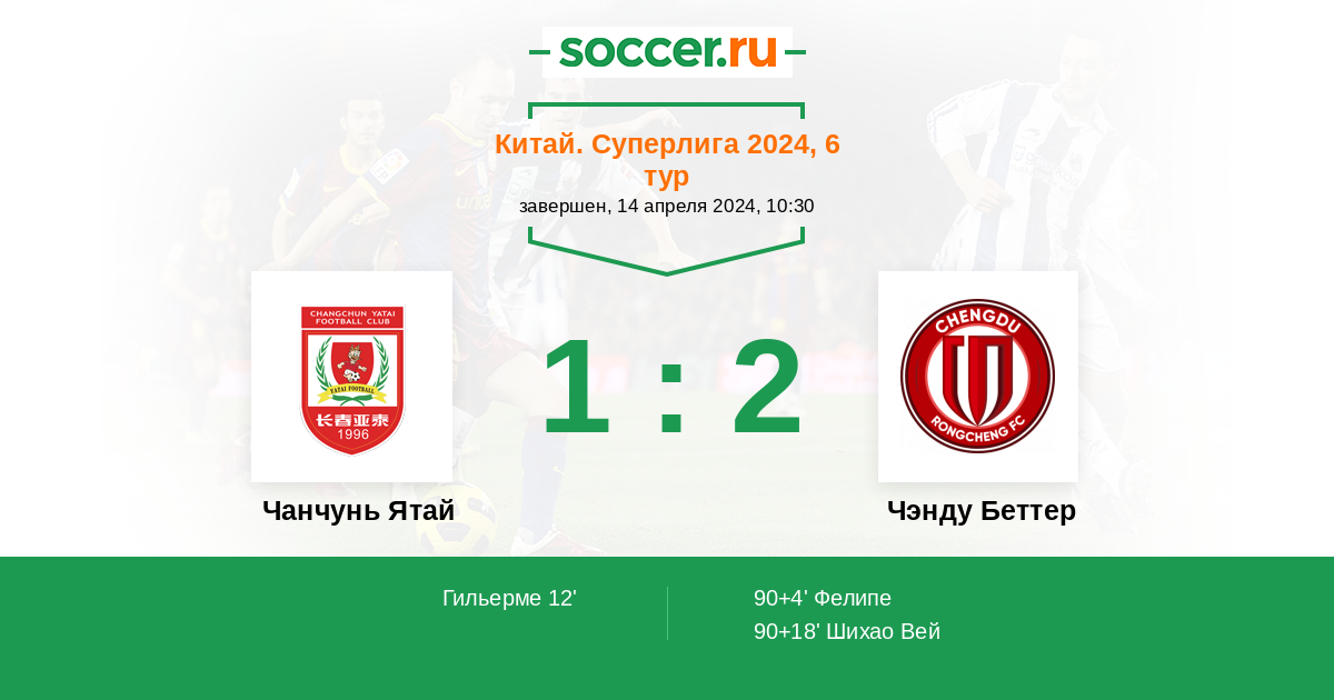 Гол90+4' (1:1) Фелипе (21) (Шихао Вей (7))