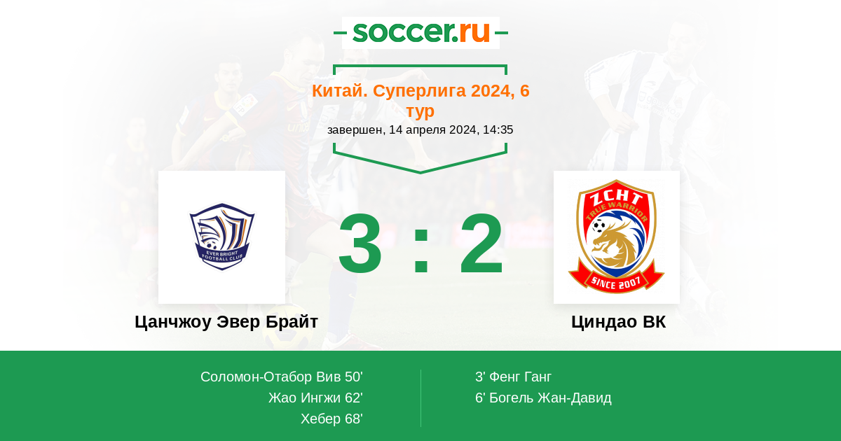 62' (2:2) Жао Ингжи (8) (Соломон-Отабор Вив (31))